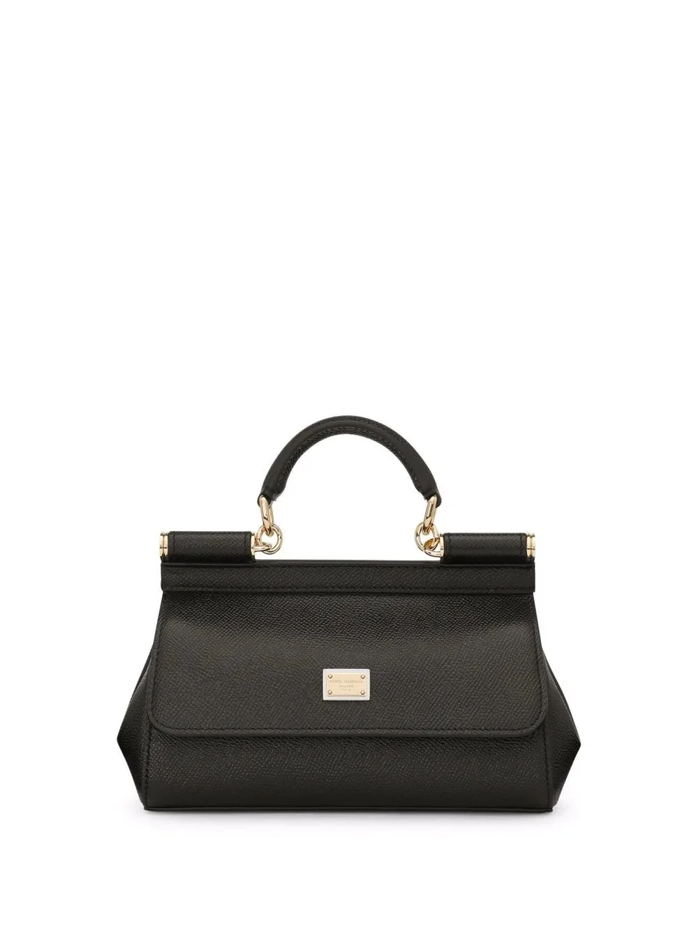 small Sicily tote bag Dolce & Gabbana is synonymous with opulent design, which is showcased in this bag from the brand's SS22 collection. Featuring a gold-tone hardware logo plaque at the front of the design and a tonal colourway, the accessory has a sense of refinement and timelessness. Highlights - Black - Leather - Logo plaque - Gold-tone hardware - Single rounded top handle - Adjustable detachable shoulder strap - Front flap closure - Magnetic fastening - Main compartment - Internal slip pocket - Internal logo stamp - Leopard print lining - This piece comes complete with a protective dust bag. Made in Italy Composition Outer: Calf Leather 100% Lining: Cotton 80%, Calf Leather 20% SIZE & FIT Measurement DEPTH 2.36 in(6 cm) HANDLE 2.36 in(6 cm) HEIGHT 5.11 in(13 cm) WIDTH 7.48 in(19 cm) STRAP 22.44 in(57 cm)