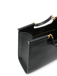 small Sicily tote bag Highlights - Black - Open top - Two flat top handles - Adjustable detachable shoulder strap - This piece comes complete with a protective dust bag. Made in Italy Composition Outer: Leather 100% SIZE & FIT Model measurements Height 5 ft 10 in(1.77 m) Bust/Chest 34.64 in(88 cm) Hips 35.43 in(90 cm) Waist 24.8 in(63 cm) Measurement DEPTH 3.14 in(8 cm) HANDLE 3.93 in(10 cm) HEIGHT 6.49 in(16.5 cm) WIDTH 10.03 in(25.5 cm)