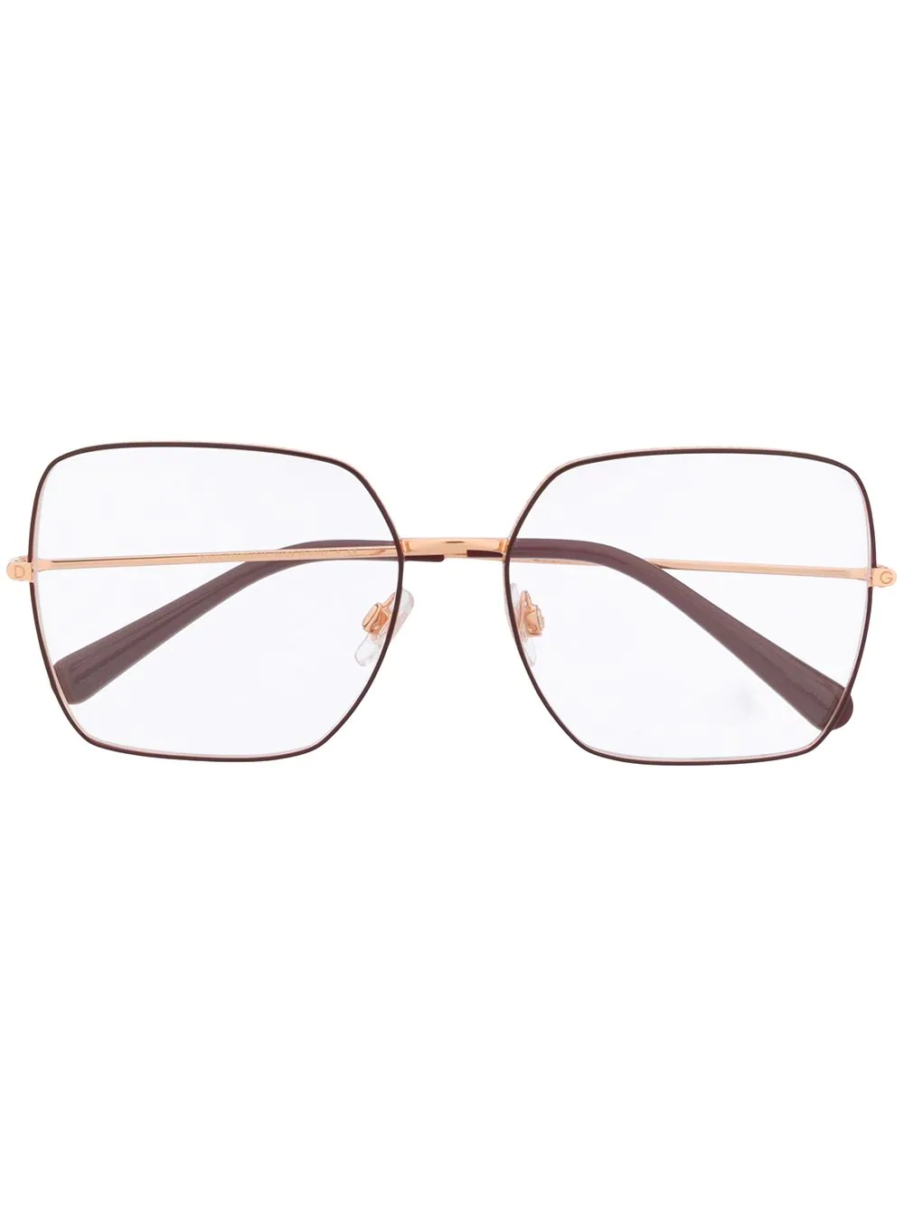 square frame glasses Gold acetate square frame glasses from Dolce & Gabbana Eyewear featuring gold-tone hardware. This item comes with a protective case. Made in Italy Composition Metal 80%, Acetate 20% SIZE & FIT Measurement Arm Length 5.51 in(14 cm) Bridge Width 0.62 in(1.6 cm) Lens Diameter 2.24 in(5.7 cm) Total Width 5.43 in(13.8 cm) Washing instructions LUXOTTICA