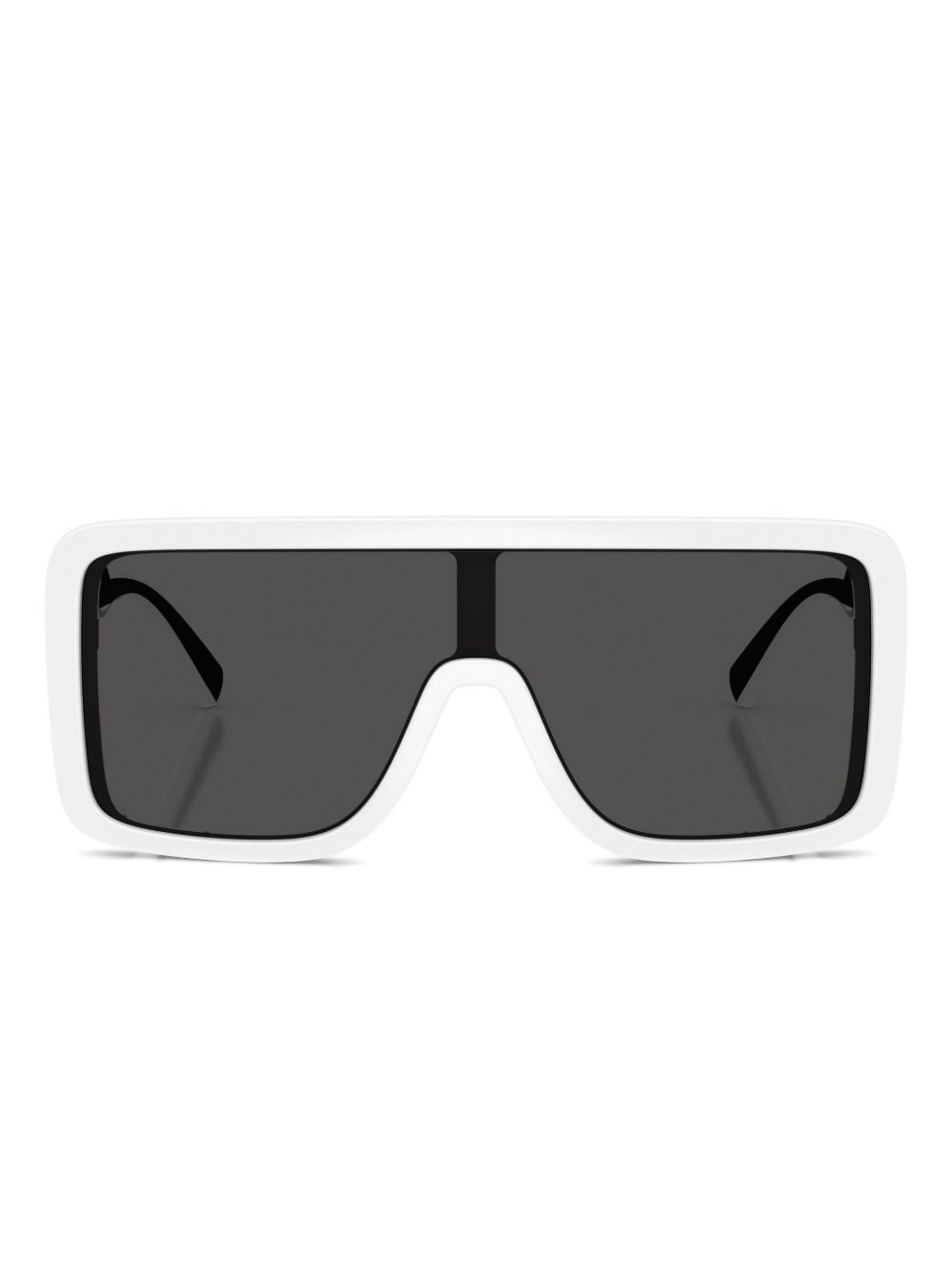 square-frame logo-detail sunglasses Highlights - White - Square frame - Logo detail on arms - Dark grey lenses - Thick frame - These glasses come with a protective case. Made in United States Composition Plastic 100%