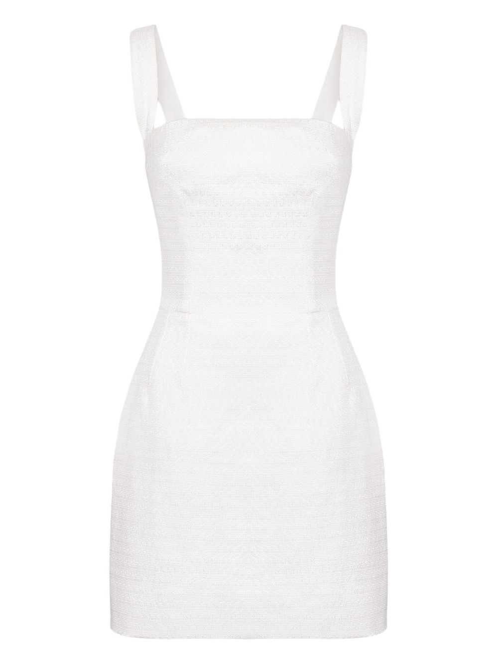 square-neck mini dress Highlights - White - Rear zip fastening - Sleeveless - Straight hem - Thigh-length Made in Italy Composition Outer: Cotton 47%, Viscose 38%, Linen/Flax 14%, Spandex/Elastane 1% Lining: Silk 91%, Spandex/Elastane 9% Washing instructions Read Manufacturer Guidelines