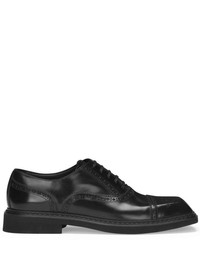 square-toe leather Derby shoes Highlights - Black - Calf leather - Perforated design - Square toe - Front lace-up fastening - Branded leather insole - Flat leather sole Made in Italy Composition Outer: Calf Leather 100% Sole: Goat Skin 100% Lining: Calf Leather 100%