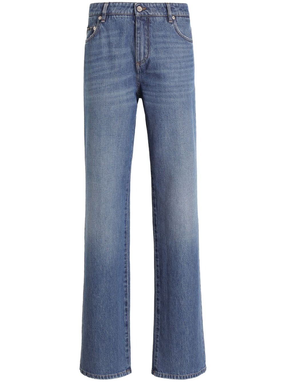 stonewashed jeans Highlights - Light blue - Concealed fly and button fastening - Belt loops - Classic five pockets - Silver-tone logo plaque Made in Italy Composition Cotton 100%