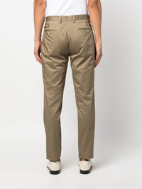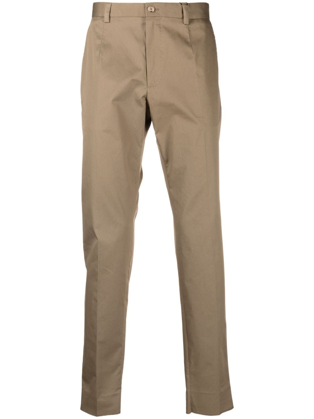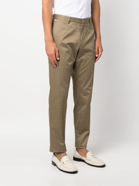 linen chinos Highlights - Khaki - Stretch-cotton - Straight leg - Mid-rise - Concealed fly and button fastening - Belt loops - Two side slit pockets - Two rear button-fastening pockets - Pressed crease Made in Italy Composition Cotton 97%, Elastane 3% SIZE & FIT Model measurements Height 6 ft 1 in(1.85 m) Bust/Chest 35.43 in(90 cm) Hips 35.82 in(91 cm) Waist 27.55 in(70 cm) FittingInformation Designed for a slim fit, offering a comfortable fit that sits just away from the leg Made from a midweight stretch fabric, this piece offers elasticity and flexibility when worn This piece fits true to size – take your usual size Washing instructions Dry Clean Only