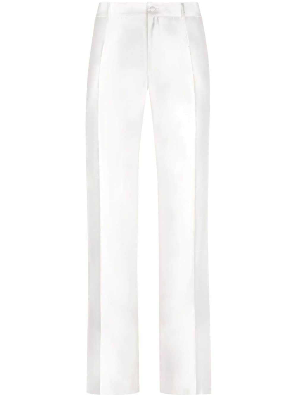 straight-leg silk tailored trousers Highlights - Optical white - Silk - Tailored design - Straight leg - Front button and zip fastening - Belt loops - Pressed crease - Two rear button-fastening jetted pockets Made in Italy Composition Silk 100% Washing instructions Read Manufacturer Guidelines