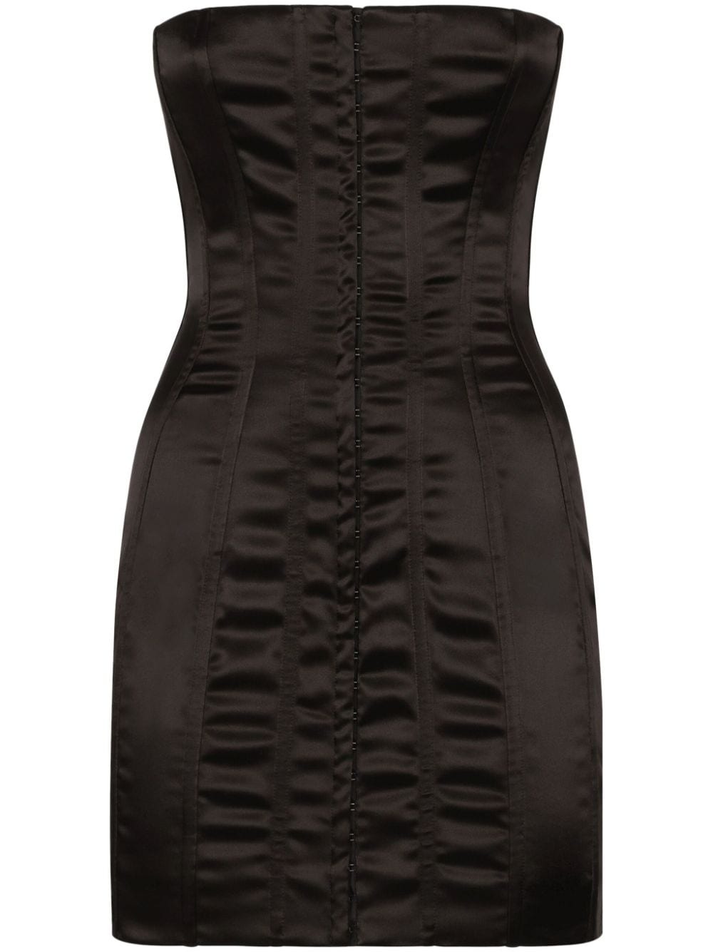 strapless satin minidress Lingerie-inspired elements are often used by Dolce & Gabbana to showcase its glamorous style. A testament to that, this black dress is crafted from satin with front hook-and-eye fastening reminiscent of corsets. Highlights - Black - Satin weave - Ruched detailing - Strapless - Front hook and eye fastening - Thigh-length - Straight hem Made in Italy Composition Acetate 65%, Polyamide 29%, Elastane 6% SIZE & FIT Measurement HIPS 27.99 in(71.1 cm) LENGTH 26.49 in(67.3 cm) WAIST 22 in(55.9 cm) BUST 27.99 in(71.1 cm) Washing instructions Read Manufacturer Guidelines