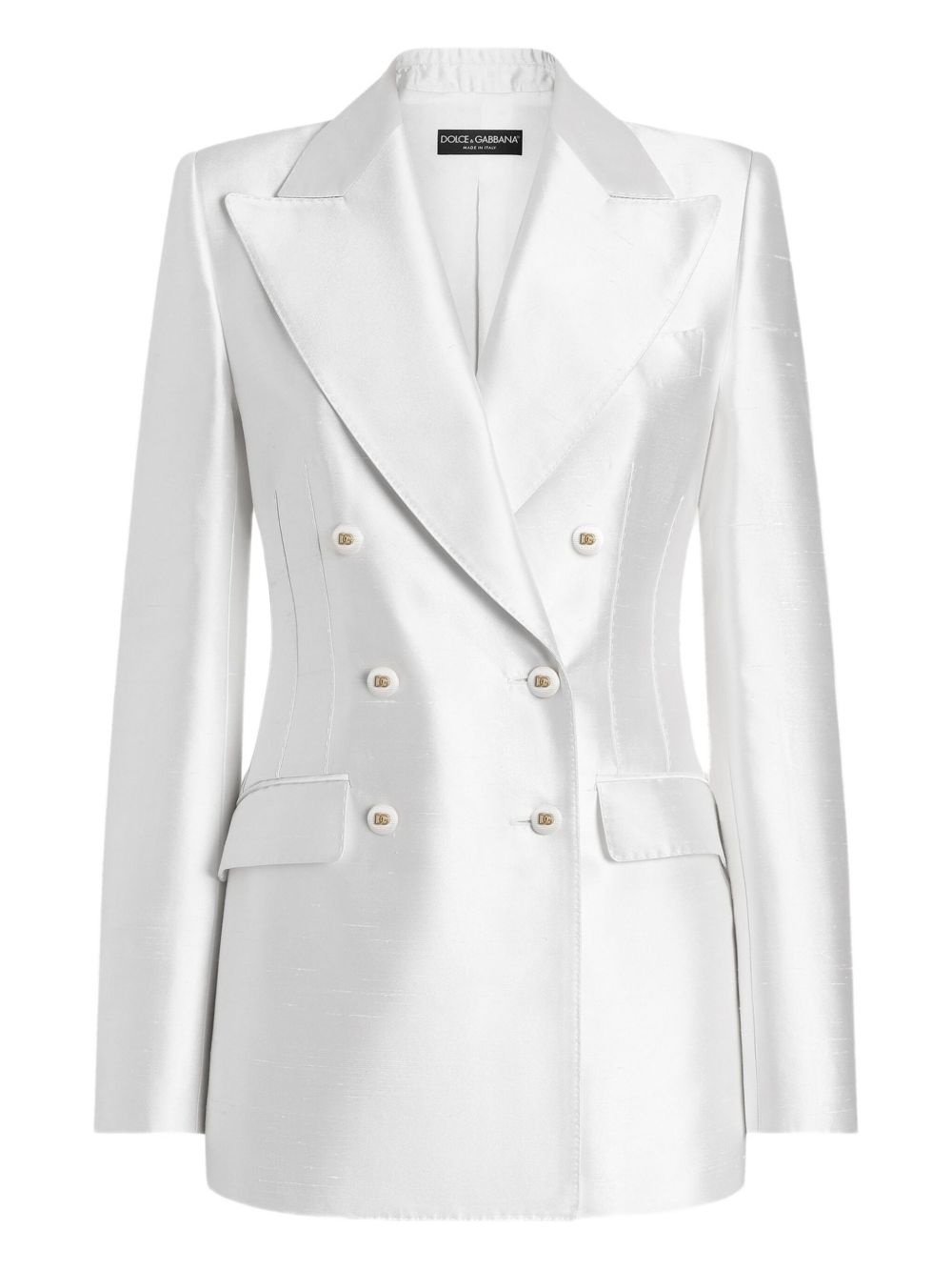 stretch-silk blazer Highlights - White - Double-breasted button fastening - Chest welt pocket - Two side flap pockets - Long sleeves Made in Italy Composition Lining: Silk 92%, Elastane 8% Outer: Silk 100% Washing instructions Read Manufacturer Guidelines