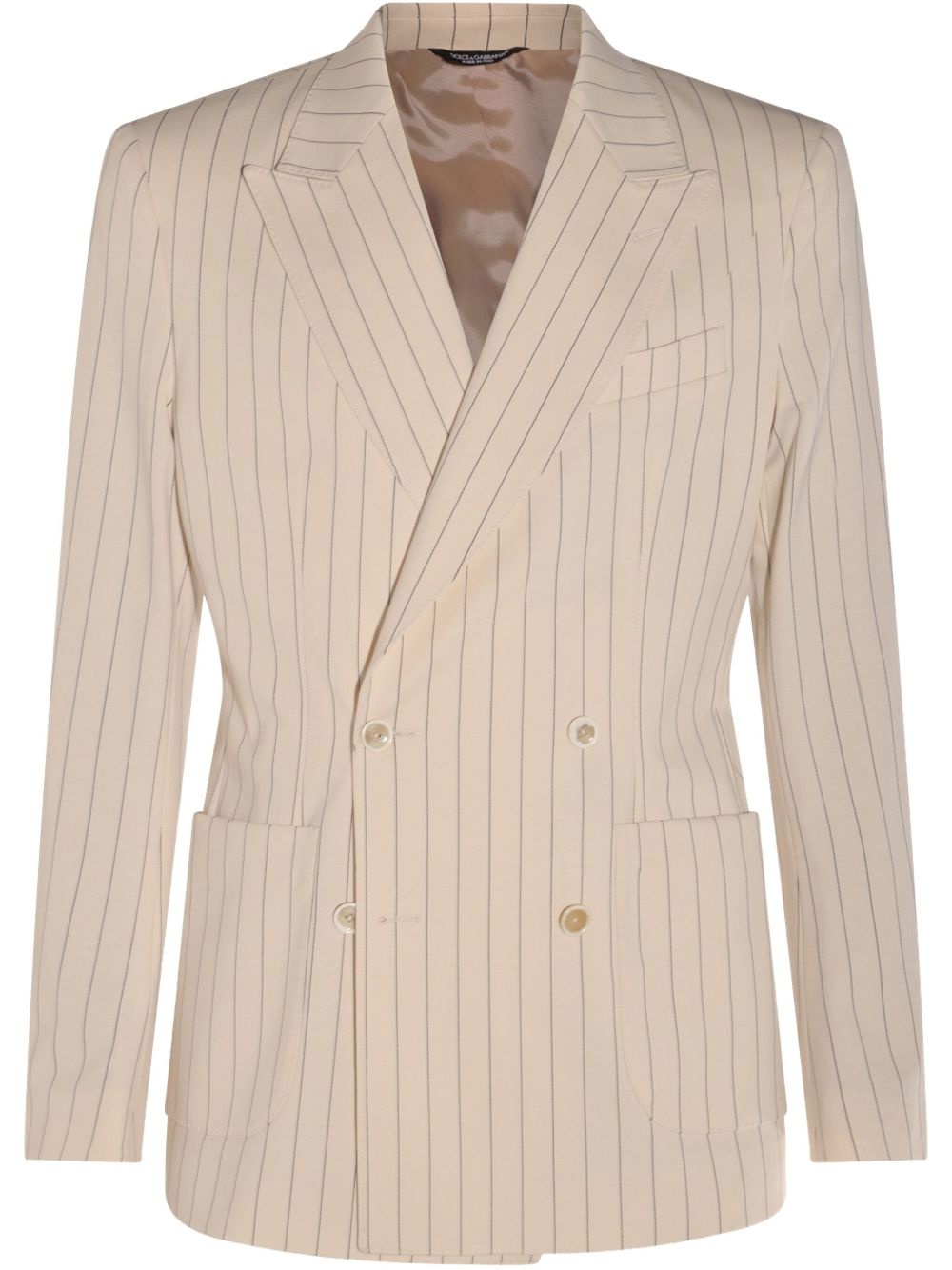 striped blazer Highlights - Light beige - Double-breasted button fastening - Two front patch pockets - Long sleeves - Straight hem Made in Italy Composition Fabric 100%