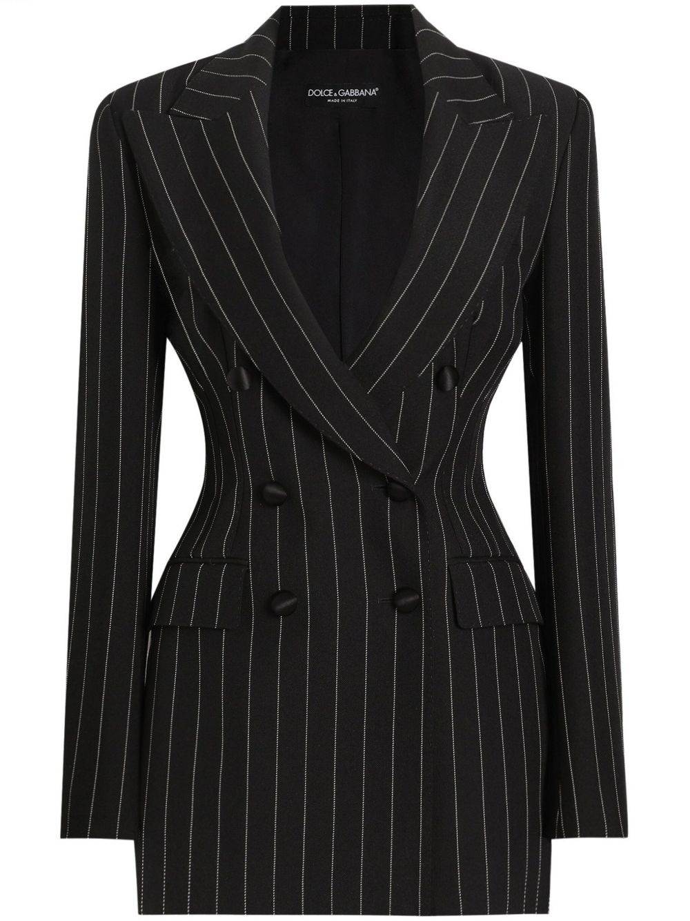 striped double-breasted blazer Highlights - Black - Double-breasted button fastening - Two front flap pockets - Buttoned cuffs - Peak lapels Made in Italy Composition Lining: Silk 92%, Spandex/Elastane 8% Outer: Virgin Wool 100%