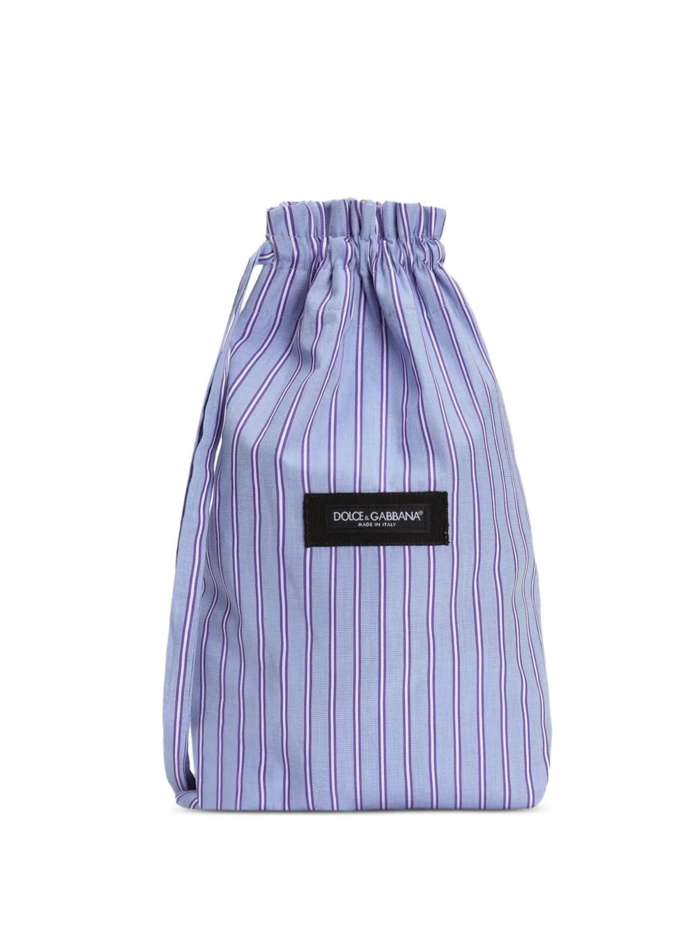 striped drawstring shoulder bag Highlights - Blue and purple - Striped-pattern - Logo patch - Drawstring closure - Shoulder strap - This piece is handmade, meaning your purchase is unique and may vary slightly from the item pictured. Made in Italy Composition Outer: Cotton 90%, CALFSKIN 7%, Polyester 3% Lining: Cotton 100% SIZE & FIT Measurement DEPTH 2.75 in(7 cm) HEIGHT 8.66 in(22 cm) WIDTH 5.9 in(15 cm)