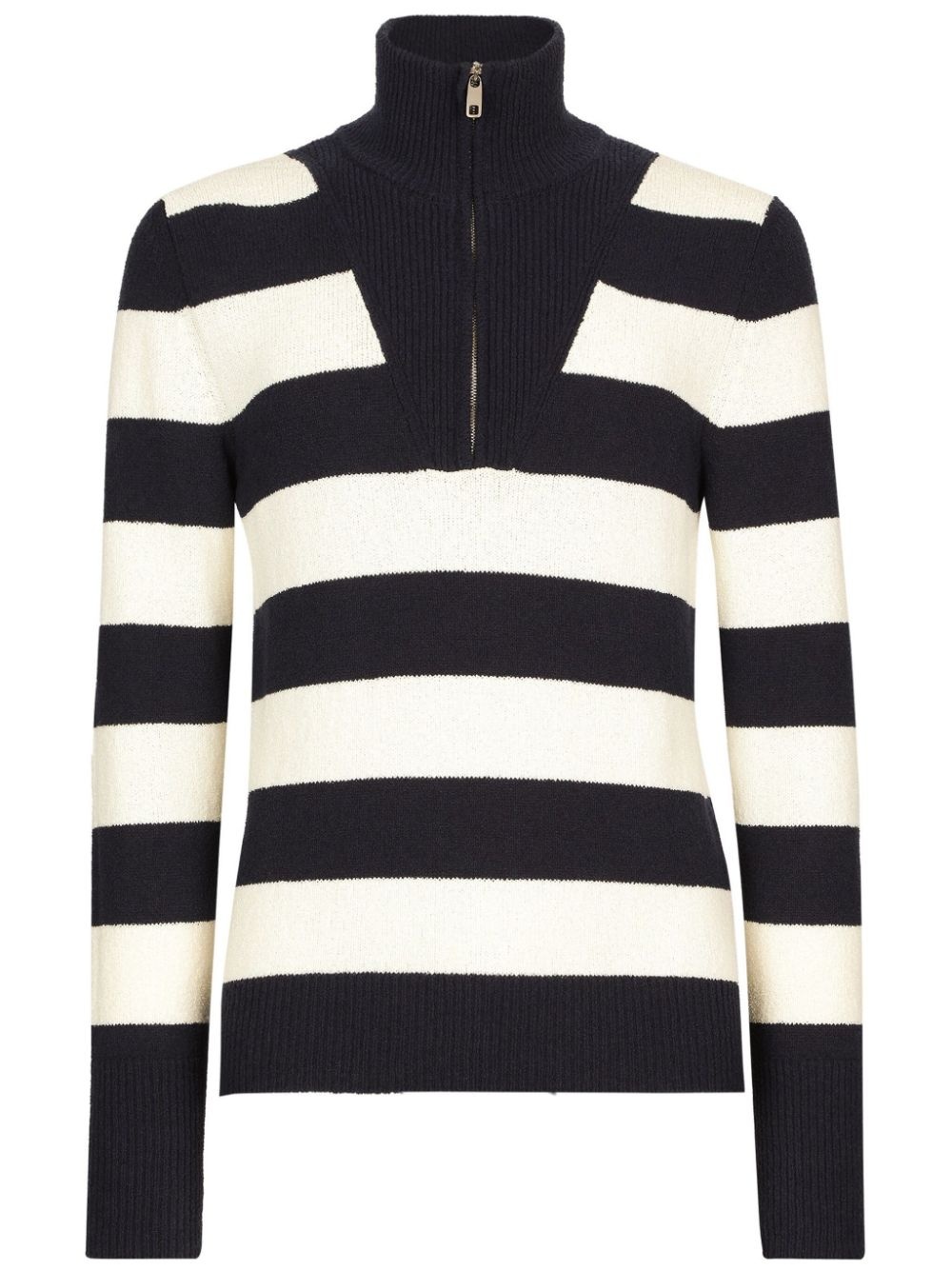 striped half-zip jumper Highlights - Navy blue /white - Cotton blend - Knitted construction - Horizontal stripe pattern - High neck - Half front zip fastening - Long sleeves - Ribbed cuffs and hem Made in Italy Composition Cotton 70%, Polyamide 30% Washing instructions Read Manufacturer Guidelines