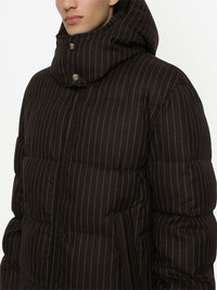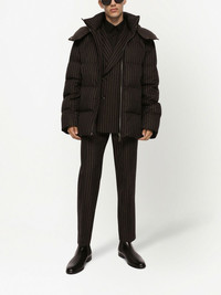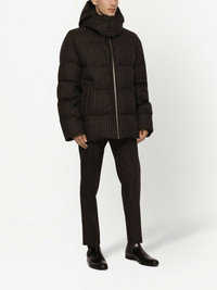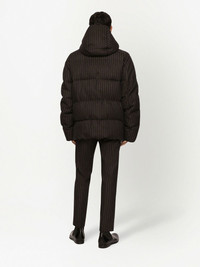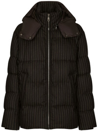 pinstriped puffer jacket Highlights - Striped hooded padded jacket from dolce & gabbana featuring black, virgin wool, padded design, stripe print, classic hood, front zip fastening, long sleeves, two side zip-fastening pockets and straight hem. Made in Italy Composition Nylon 100%, Virgin Wool 100%