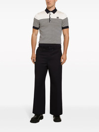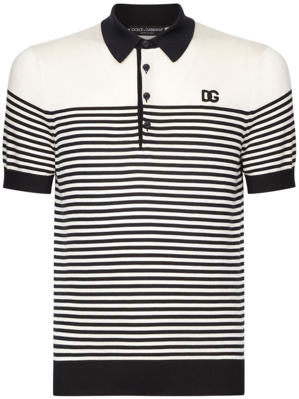 striped logo-embroidered polo shirt Highlights - White/navy blue - Silk - Fine knit - Horizontal stripe pattern - Embroidered logo to the front - Polo collar - Front button placket - Short sleeves - Ribbed cuffs and hem Made in Italy Composition Silk 100% SIZE & FIT Measurement CHEST 42.51 in(108 cm) Washing instructions Read Manufacturer Guidelines