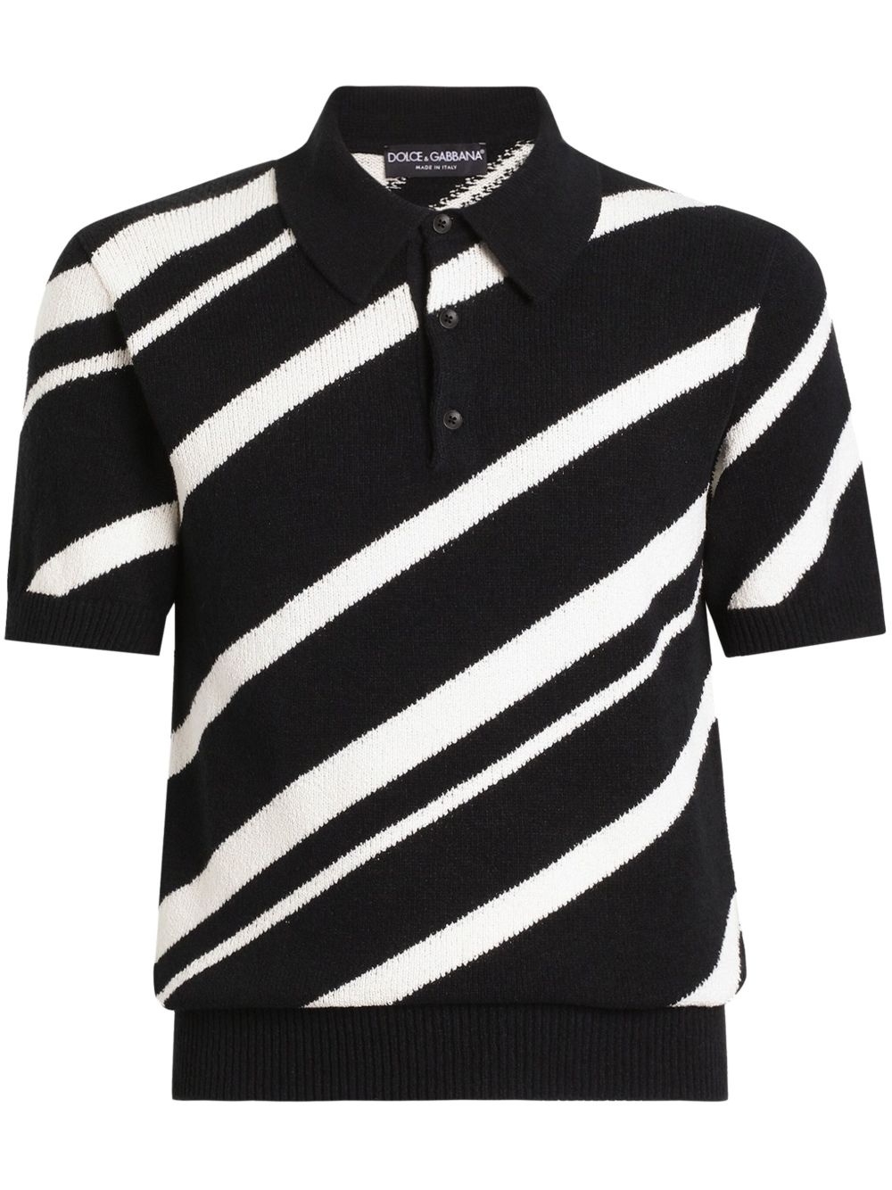 striped polo shirt Highlights - Black - Short front button fastening - Ribbed cuffs and hem - Short sleeves Made in Italy Composition Cotton 65%, Polyamide 35%