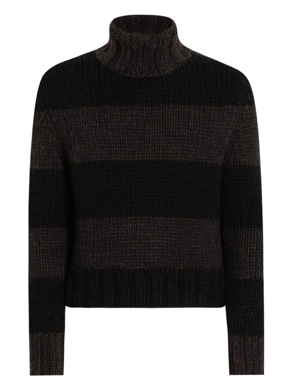 striped roll-neck sweater Highlights - Black and brown - Roll neck - Horizontal stripes - Long sleeves - Ribbed cuffs - Chunky knit Made in Italy Composition Wool 45%, Acrylic 35%, Cashmere 11%, Alpaca 9%