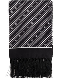 striped silk scarf Highlights - Black - Diagonal stripe print - Fringed edge - All-over logo print Made in Italy Composition Silk 100% SIZE & FIT Measurement LENGTH 55.11 in(140 cm) WIDTH 5.9 in(15 cm)