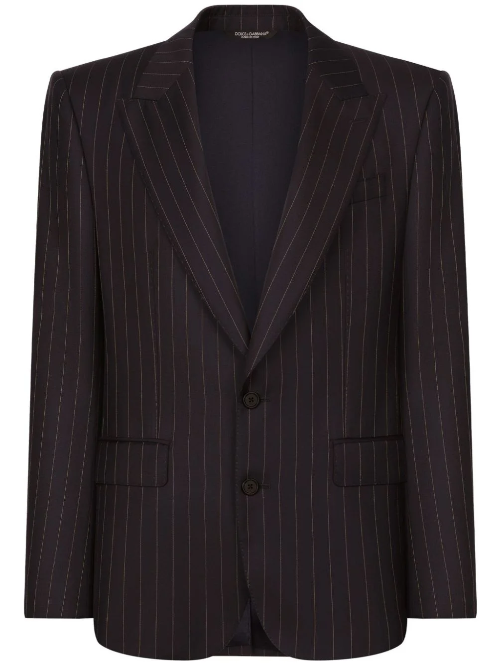 striped single-breasted blazer Highlights - Black - Virgin wool - Vertical stripe pattern - Peak lapels - Front button fastening - Long sleeves - Chest welt pocket - Two front flap pockets - Straight hem Made in Italy Composition Virgin Wool 100% Washing instructions Read Manufacturer Guidelines