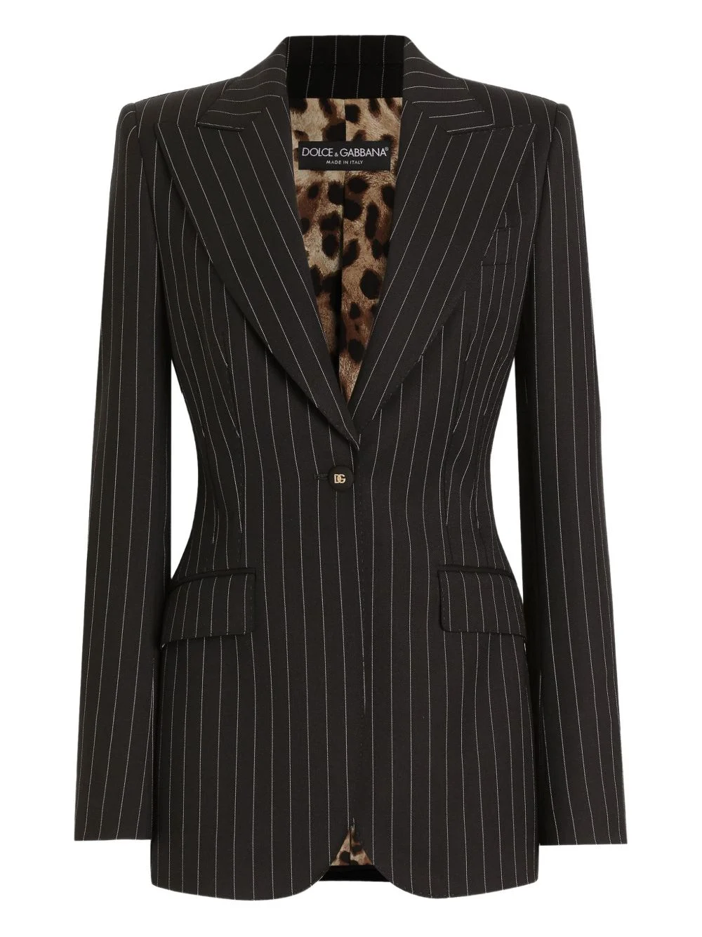 striped single-breasted jacket Highlights - Black - Striped - Single-breasted - Button fastening - Peaked lapels - Flap pockets - Buttoned cuffs Made in Italy Composition Outer: Virgin Wool 97%, Elastane 3% Lining: Silk 93%, Elastane 7% Washing instructions Read Manufacturer Guidelines