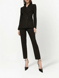 pinstriped twill trousers Highlights - Black - Virgin wool blend - Vertical stripe pattern - High waist - Tailored cut - Slim cut Made in Italy Composition Virgin Wool 97%, Elastane 3% SIZE & FIT Measurement INSIDE LEG 28.74 in(73 cm) HIPS 34.64 in(88 cm) WAIST 25.19 in(64 cm)