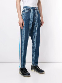 striped washed effect jeans If you're aiming for perfection, these Dolce & Gabbana tapered jeans are it. Boasting a striped design and comfortable construction, these ones are the "creme de la creme" of what it means to be fashionable. Thank us later. Featuring belt loops, a front button fastening, a five pocket design, contrasting side panels, a striped print and a tapered leg. Made in Italy Composition Cotton 100% SIZE & FIT Model measurements Height 6 ft 0 in(1.84 m) Bust/Chest 35.43 in(90 cm) Hips 35.82 in(91 cm) Waist 28.74 in(73 cm) FittingInformation This piece fits large – you might want to get one size down Cut for a slim fit Made with a mid-weight stretch fabric Washing instructions Dry Clean Only