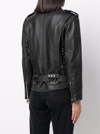 Belted leather biker jacket