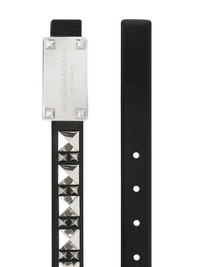 studded logo-plaque leather belt