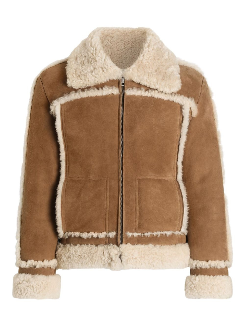 suede shearling jacket Highlights - Dark sand - Suede outer shell - Shearling inner - Zip front fastening - Patch pockets - Contrasting shearling trim Made in Italy Composition Sheepskin 100% Washing instructions Read Manufacturer Guidelines