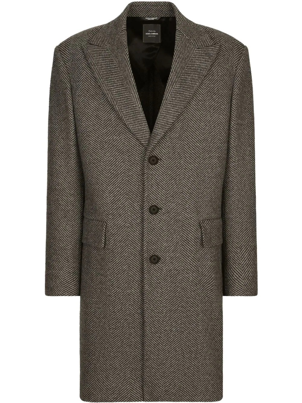 herringbone-pattern single-breasted coat Highlights - Barley brown - Wool - Peak lapels - Front button fastening - Long sleeves - Two front flap pockets - Mid-length - Central rear vent Made in Italy Composition Outer: Wool 70%, Nylon 29%, Other fibres 1% Lining: Rayon 100%