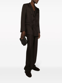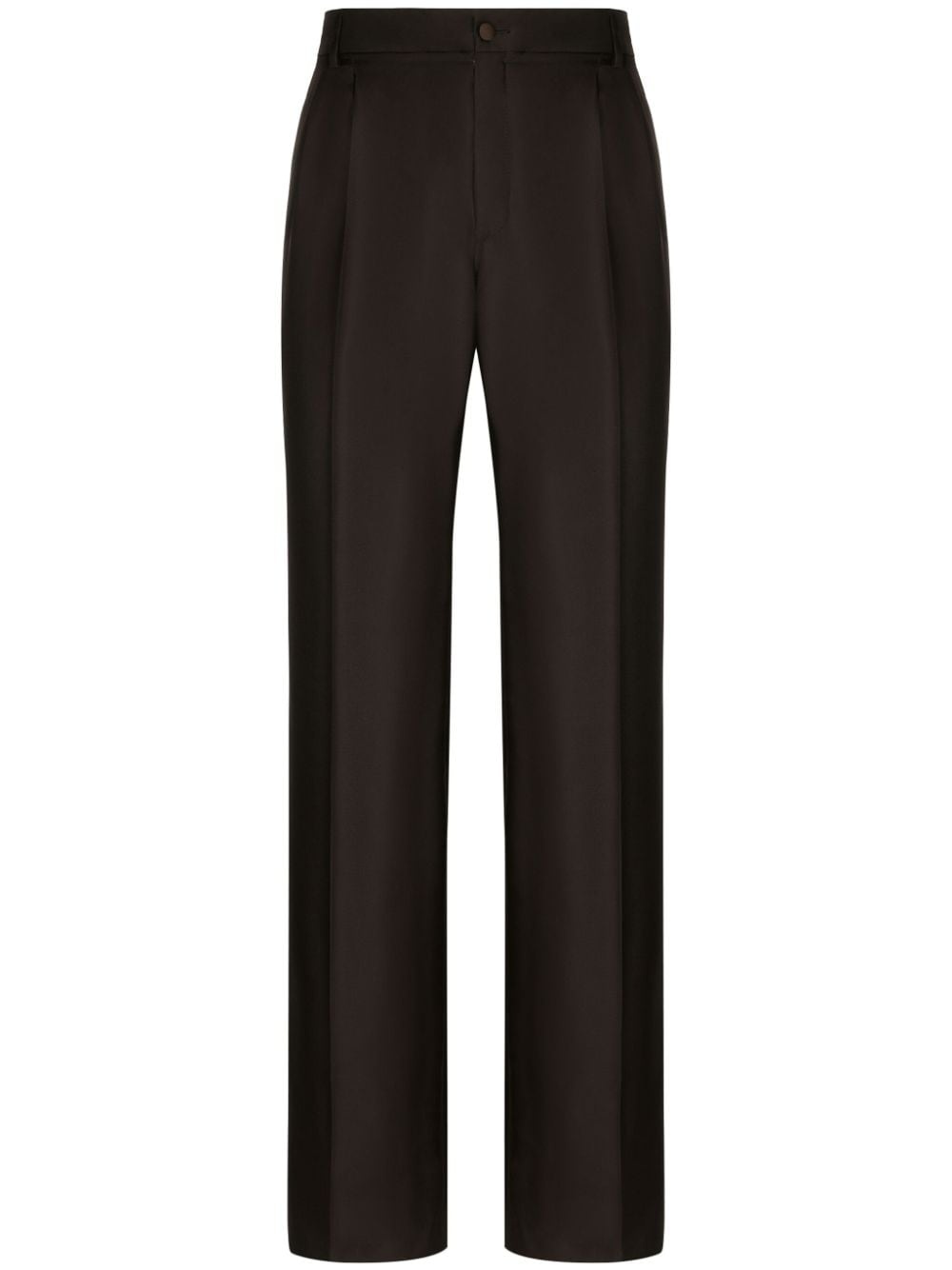 tailored silk trousers brown silk tailored cut mid-rise belt loops straight leg pressed crease button fly fastening two side slash pockets two rear button-fastening jetted pockets Made in Italy Composition Silk 100%