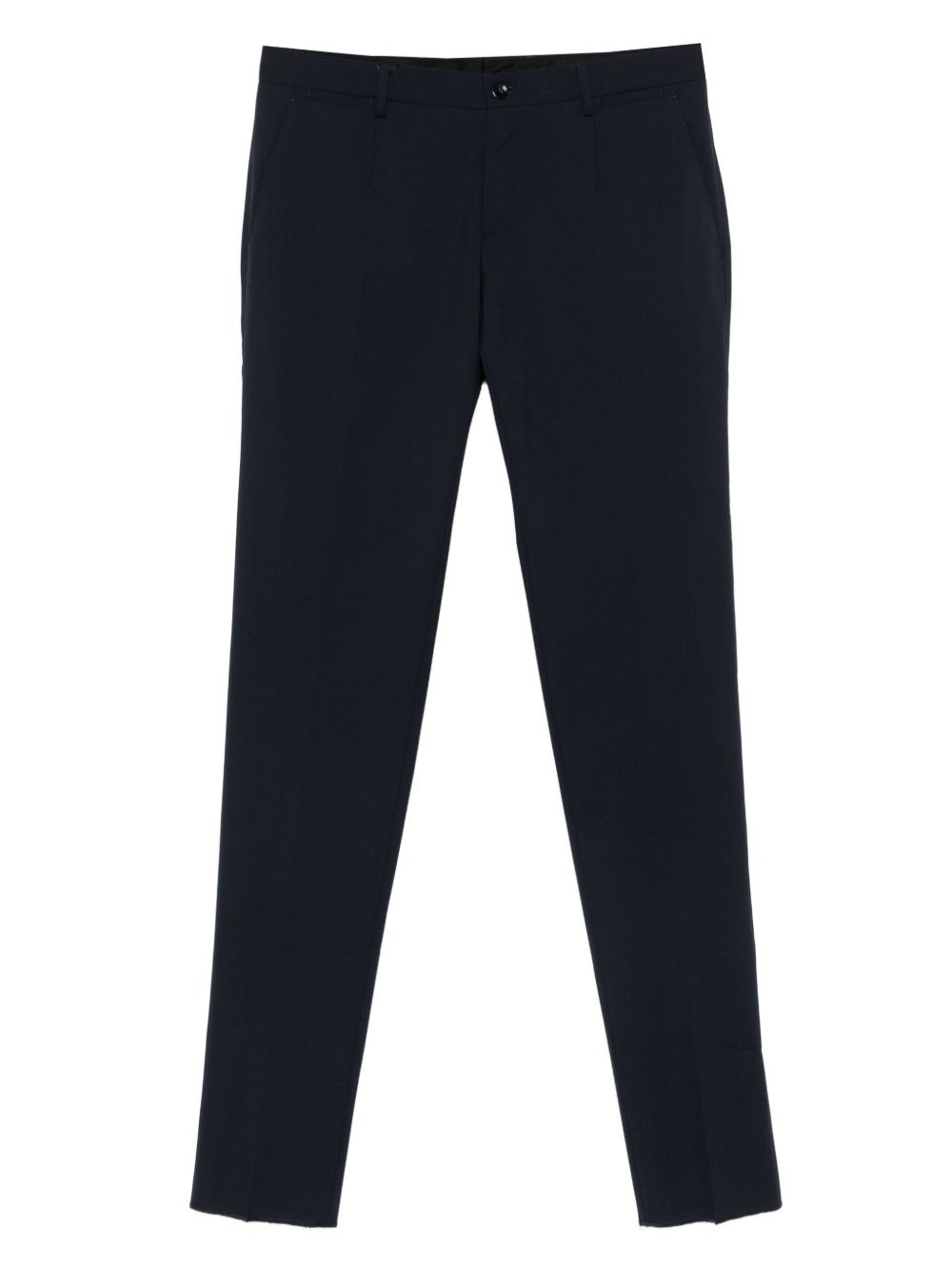tailored trousers Highlights - Blue - Straight hem - Button fastening - Belt loops - Welt pockets Made in Italy Composition Outer: Virgin Wool 98%, Elastane 2% Lining: Viscose 100% SIZE & FIT Model measurements Height 6 ft 1 in(1.85 m) Bust/Chest 35.82 in(91 cm) Hips 37.79 in(96 cm) Waist 29.13 in(74 cm) Washing instructions Dry Clean Only