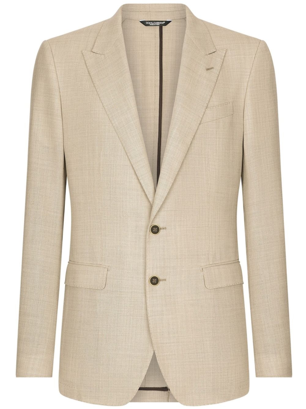 Taormina single-breasted blazer Highlights - Light beige - Virgin wool - Peak lapels - Front button fastening - Long sleeves - Chest welt pocket - Two front flap pockets - Straight hem Made in Italy Composition Virgin Wool 100% Washing instructions Read Manufacturer Guidelines