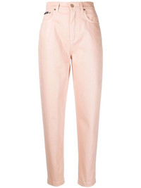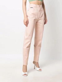 tapered high-waisted trousers Highlights - Beige - High-waisted - Tapered leg - Front button and zip fastening - Logo patch to the rear Made in Italy Composition Cotton 100% SIZE & FIT Model measurements Height 5 ft 10 in(1.77 m) Bust/Chest 35.03 in(89 cm) Hips 35.03 in(89 cm) Waist 23.62 in(60 cm) FittingInformation This piece fits true to size. We recommend you get your regular size Cut for a slim fit Made with a mid-weight non-stretch fabric Washing instructions Machine Wash