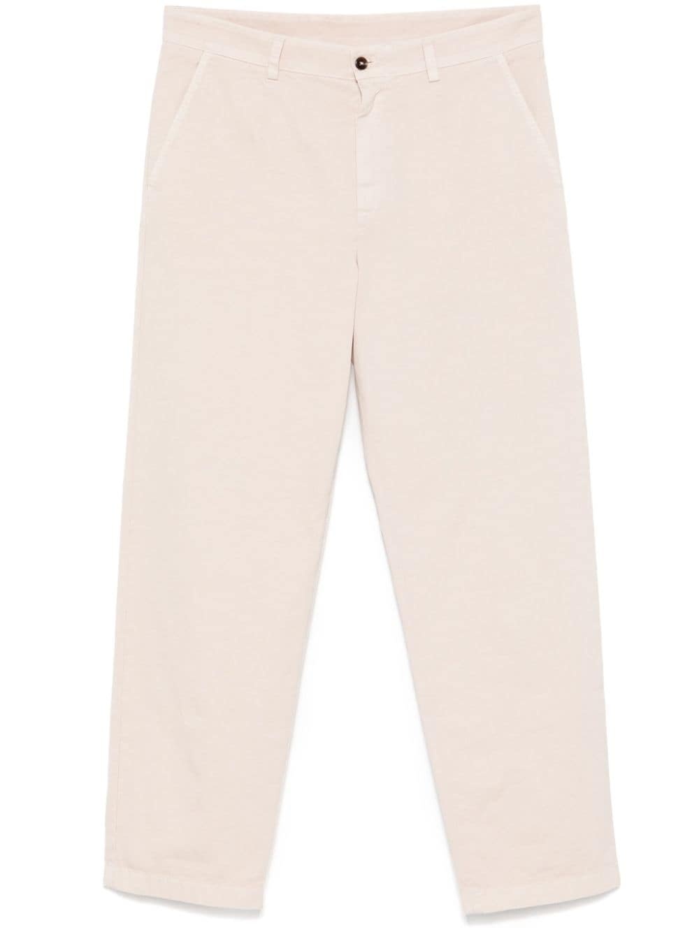 tapered-leg trousers Highlights - Light beige - Cotton - Twill weave - Concealed fly and button fastening - Belt loops - Two diagonal pockets to the sides - Two rear welt pockets - Mini logo tag to the back - Tapered leg Made in Italy Composition Cotton 100% SIZE & FIT Model measurements Height 6 ft 2 in(1.87 m) Bust/Chest 36.22 in(92 cm) Hips 37 in(94 cm) Waist 27.95 in(71 cm) FittingInformation Designed for a straight-leg, allowing for an unrestricted and comfortable fit over the leg Made from a midweight non-stretch fabric