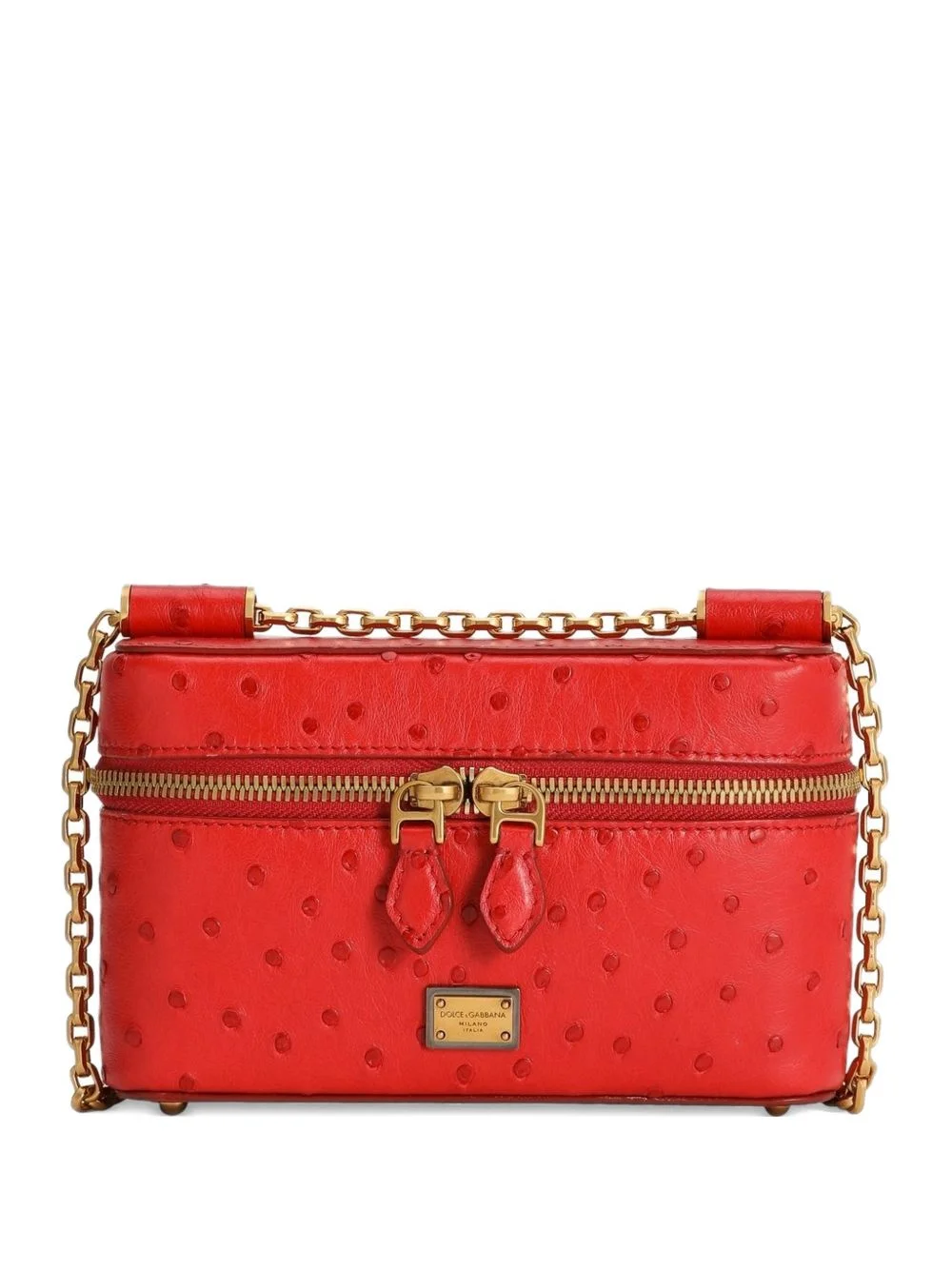 textured shoulder bag Highlights - Poppy red - Gold-tone hardware - Zip fastening - Chain strap - Internal mirror - Logo plaque Made in Italy Composition Outer: Ostrich Leather 100% Lining: Lambskin 100%