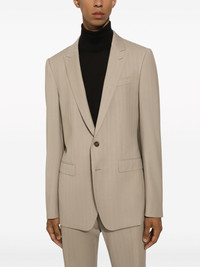 tonal-striped two-piece suit Dolce & Gabbana's traditional style is represented by this two-piece suit. Handcrafted from pure virgin wool in a classic light-brown hue, both pieces are patterned with a tonal vertical stripe style. Highlights - Light brown - Virgin wool - Vertical stripe pattern - Jacket: - Notched lapels - Front button fastening - Chest welt pocket - Two front flap pockets - Internal pocket - Long sleeves - Buttoned cuffs - Central rear vent - Straight hem - Full lining - Trousers: - Slim leg - Pressed crease - Belt loops - Button fly fastening - Two side slit pockets - Two rear welt pockets - Ankle-length Made in Italy Composition Virgin Wool 100% Washing instructions Read Manufacturer Guidelines