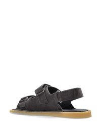touch-strap leather sandals Highlights - Anthracite grey - Touch-strap fastening - Round open toe - Flat rubber sole - Silver-tone logo plaque Made in Italy Composition Sole: Rubber 100% Lining: Calf Leather 100% Outer: Calf Suede 100%