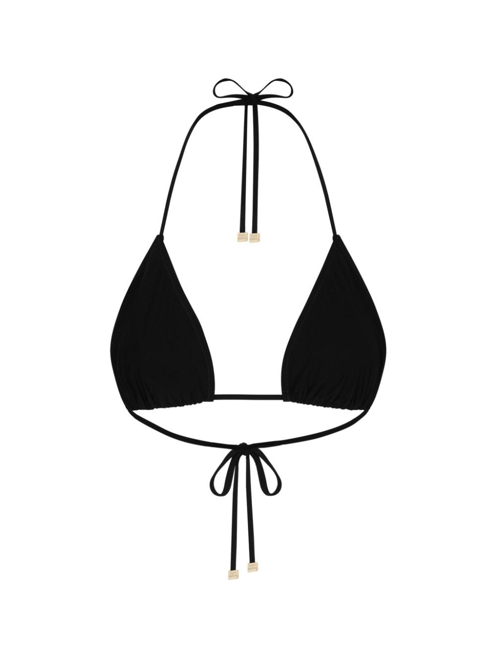 triangle-cup bikini top Highlights - Black - Stretch-design - Triangle cup - Rear tie fastening - Adjustable fit - Be mindful to try on swimwear over your own garments. Made in Italy Composition Lining: Nylon 80%, Spandex/Elastane 20% Outer: Nylon 72%, Spandex/Elastane 28% Washing instructions Read Manufacturer Guidelines