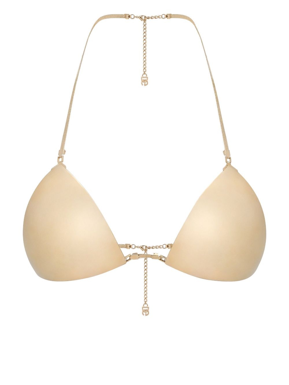 triangle-shape bikini top Highlights - Gold-tone - Triangle shape - Chain-link detailing - Halterneck - Lobster claw fastening - Adjustable fit Made in Italy