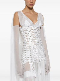 tulle gloves Highlights - White - Sheer fabric - Long length - Close-fitting - Mini logo tag Made in Italy Composition Polyamide 92%, Spandex/Elastane 8%