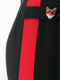tuxedo stripe fox trim trousers Dolce & Gabbana are the height of romanticism, femininity and Italian luxury. Along with bright colours and signature floral blooms, the designers behind the iconic brand are expert in fashioning timeless essentials for the woman of any age. These black and red cotton-blend tuxedo stripe fox trim trousers from Dolce & Gabbana feature a button and zip fly, compression tabs to the sides, vertical stripes and fox-shaped button trim. Made in Italy Composition Cotton 58%, Viscose 35%, Acetate 4%, Spandex/Elastane 3% SIZE & FIT Model measurements Height 5 ft 10 in(1.78 m) Bust/Chest 33.46 in(85 cm) Hips 36.22 in(92 cm) Waist 23.22 in(59 cm) Washing instructions Dry Clean Only