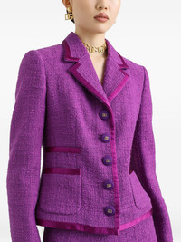DNA tweed blazer Highlights - Violet purple - Front button fastening - Two front patch pockets - Notched lapels - Long sleeves Made in Italy Composition Outer: Cotton 81%, Viscose 9%, Silk 8%, Polyester 2% Lining: Silk 92%, Spandex/Elastane 8% Washing instructions Read Manufacturer Guidelines