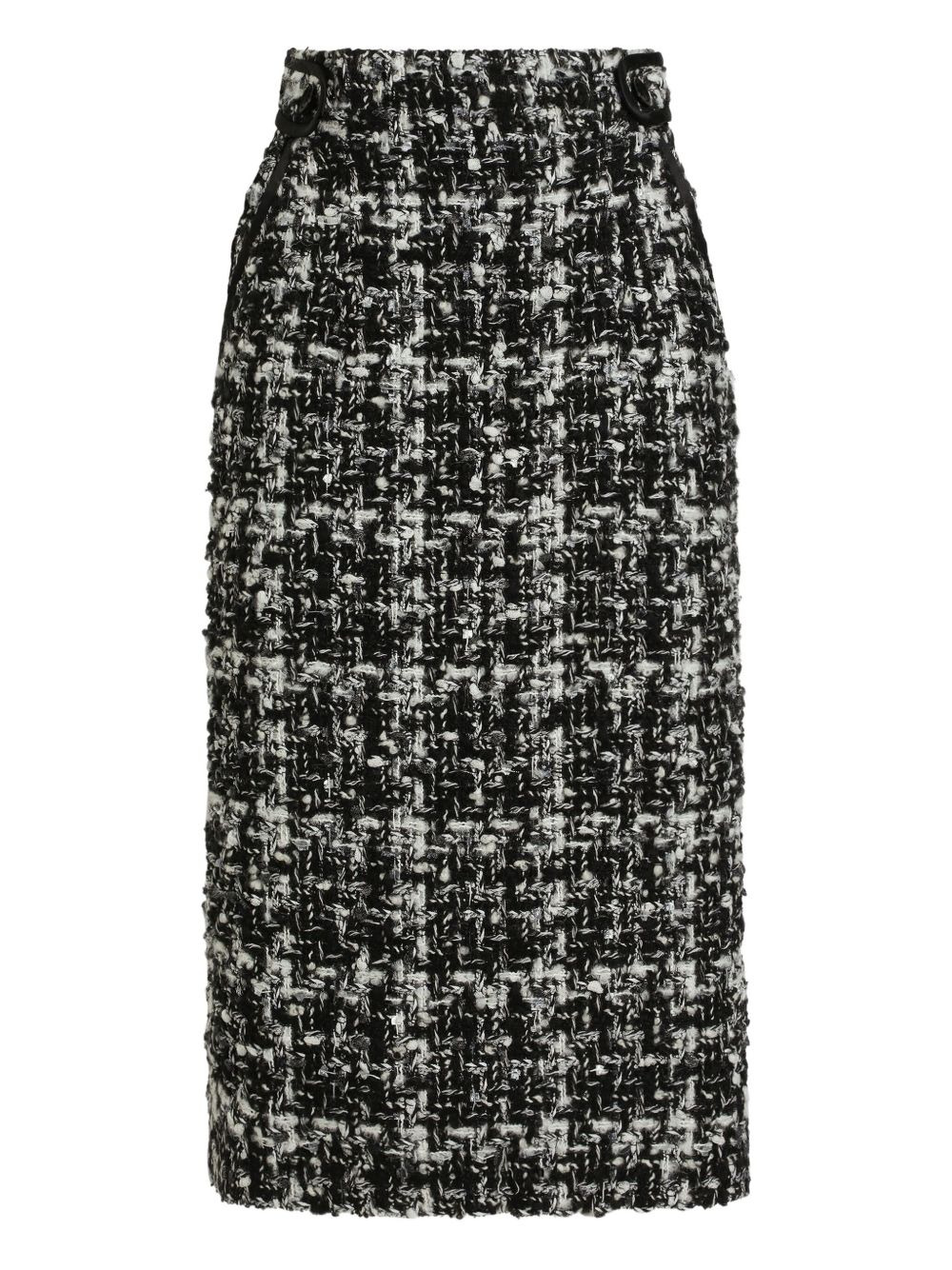 tweed checked midi skirt Highlights - Black - Tweed texture - Straight hem Made in Italy Composition Outer: Wool 44%, Polyamide 15%, Polyester 15%, Silk 8%, Cotton 8%, Acrylic 6%, Viscose 4% Lining: Polyester 97%, Elastane 3% Washing instructions Read Manufacturer Guidelines