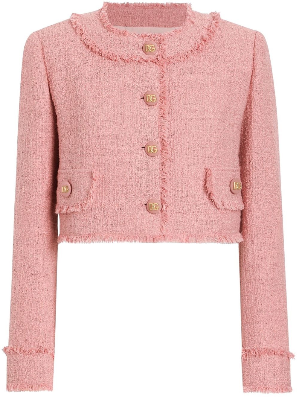 DNA tweed jacket Highlights - Powder pink - Front button fastening - Collarless - Buttoned cuffs - Two side flap pockets Made in Italy Composition Silk 91%, Cotton 90%, Viscose 10%, Spandex/Elastane 9%