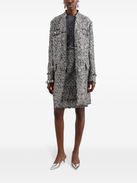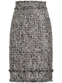 tweed skirt Highlights - Ash grey/multicolour - Tweed - Concealed rear zip fastening - High-waisted - Frayed detailing - Silver-tone logo plaque - Pencil silhouette - Above-knee length Made in Italy Composition Outer: Polyester 94%, Spandex/Elastane 6% Lining: Polyamide 88%, Spandex/Elastane 12%
