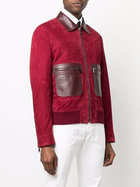 suede bomber jacket Highlights - Red lambskin two-tone zip leather jacket from dolce & gabbana featuring two-tone design, classic collar, front zip fastening, long sleeves, cuff zips, front zip fastening pockets and straight hem. Made in Italy Composition Outer: Lamb Skin 100% Lining: Rayon 100%