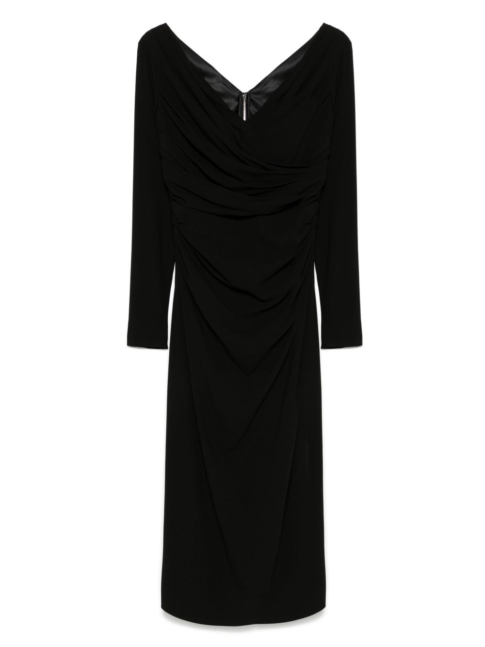 v-neck dress Highlights - Black - Rear zip fastening - Long sleeves - Straight hem Made in Italy Composition Lining: Silk 92%, Elastane 8% Outer: Viscose 69%, Silk 25%, Elastane 6% SIZE & FIT Model measurements Height 5 ft 10 in(1.79 m) Bust/Chest 33.07 in(84 cm) Hips 35.82 in(91 cm) Waist 24.01 in(61 cm) FittingInformation Designed for a close fit throughout Made from a midweight stretch fabric, this piece offers elasticity and flexibility when worn