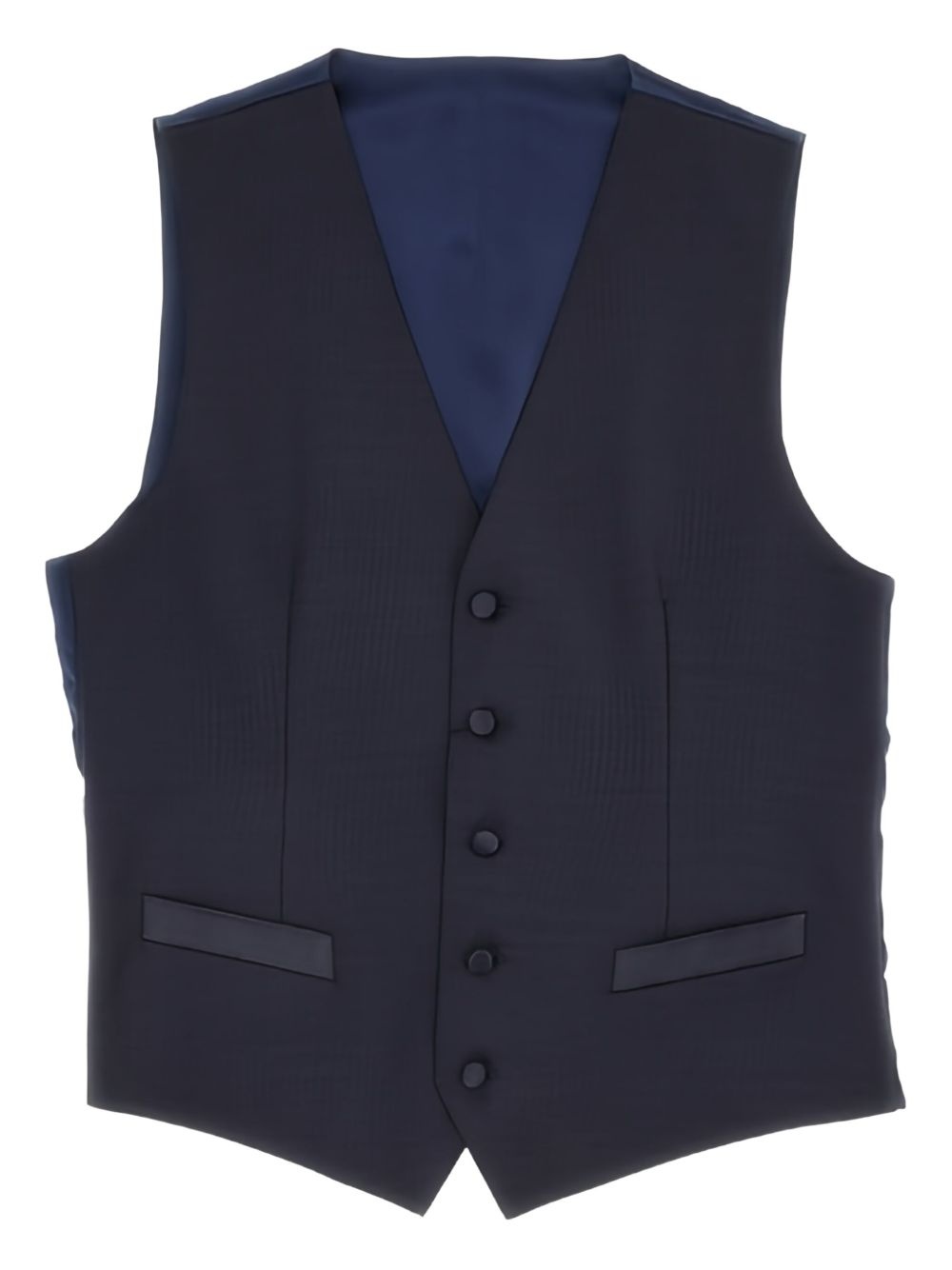 v-neck vest Highlights - Blue - Button fastening - Two side welt pockets - Sleeveless Imported Composition Fabric 100%