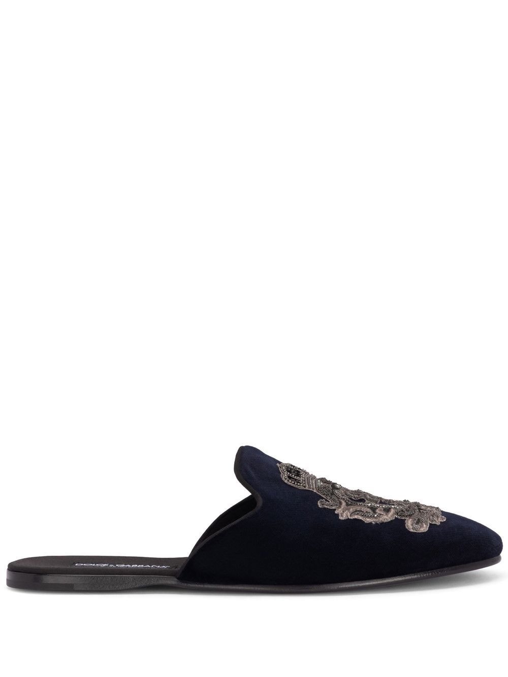 velvet-finish embroidered slippers