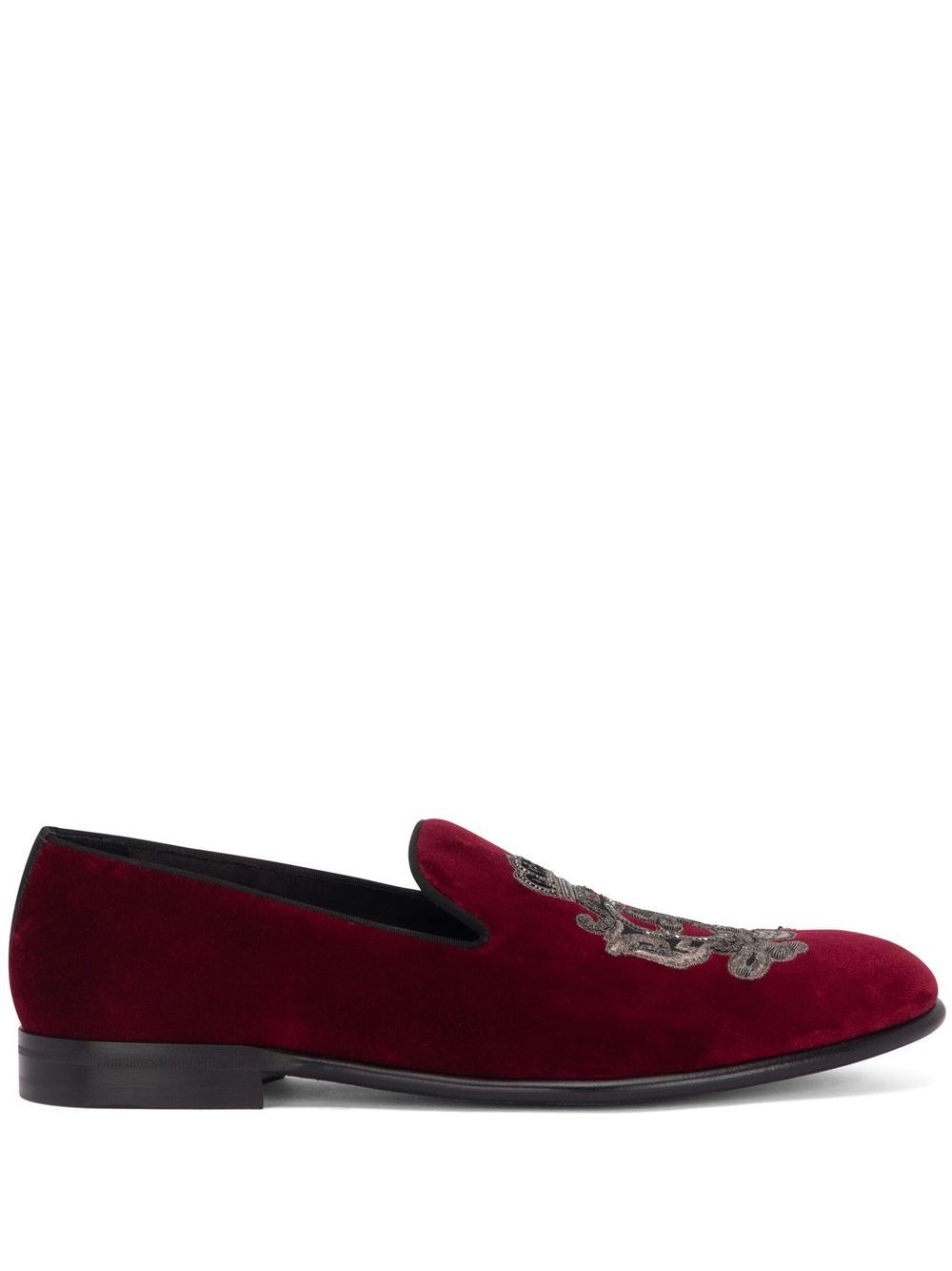 embroidered velvet slippers Highlights - Bordeaux red - Leather - Embroidered design - Branded insole - Round toe - Flat sole Made in Italy Composition Lining: Rayon 55%, Silk 26%, Goat Skin 19% Sole: Leather 100% Outer: Rayon 52%, Cotton 48%