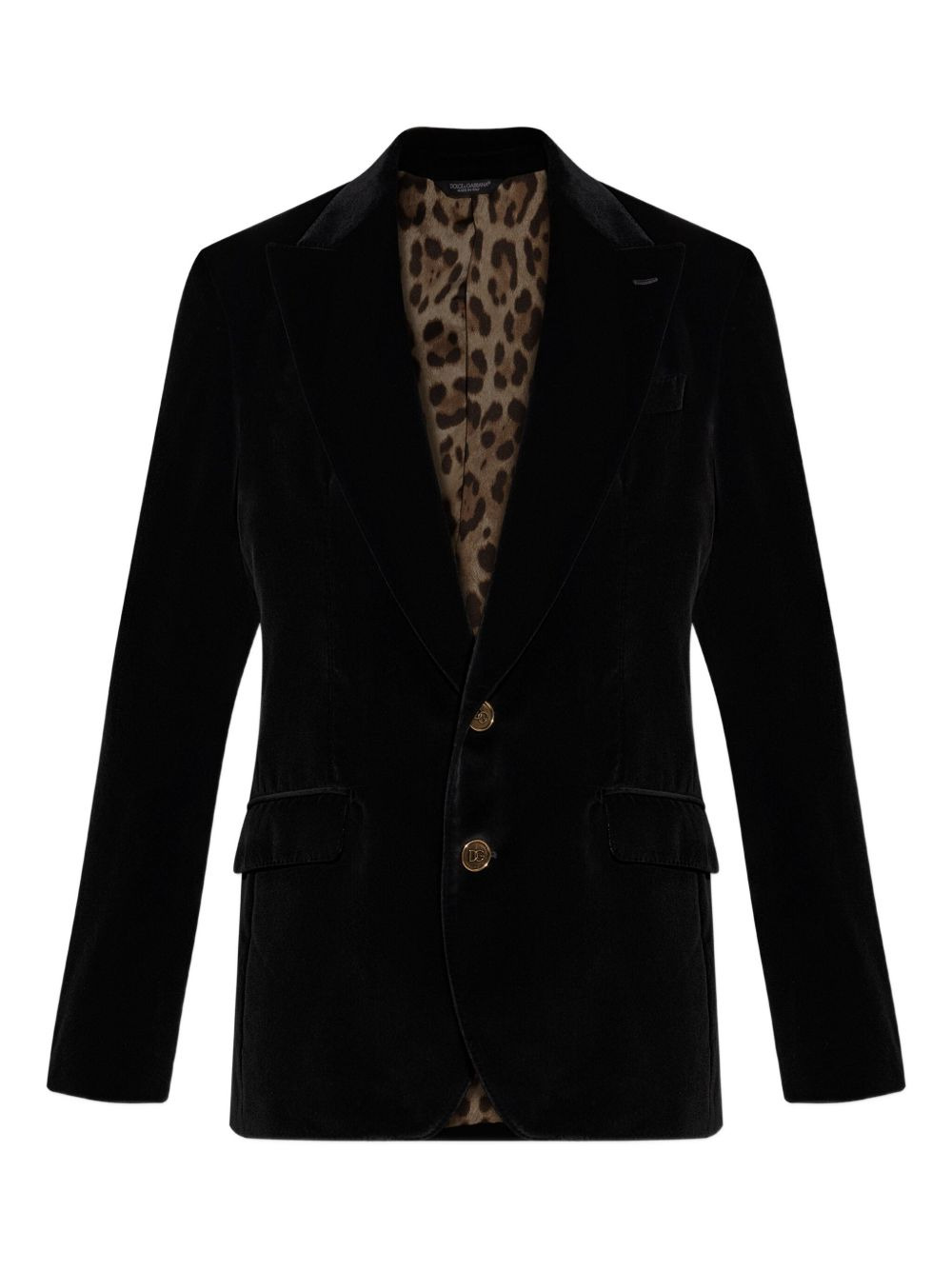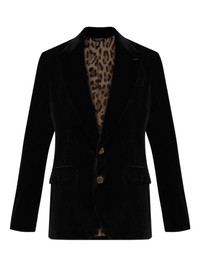 velvet notched-lapel blazer Highlights - Black - Velvet texture - Notched lapel - Single button fastening - Gold-tone button - Leopard print lining Made in Italy Composition Cotton 100% Washing instructions Read Manufacturer Guidelines